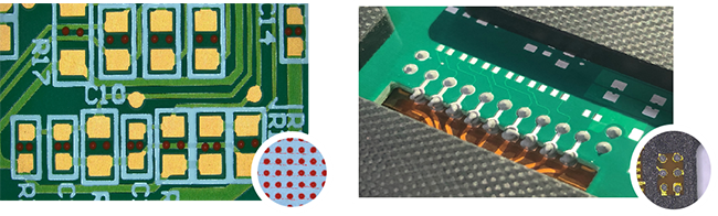 | · 點(diǎn)紅膠工藝主要作用是增加元器件的粘接性,防止元器件在過爐過程中出現(xiàn)位移、脫落,以及增加大元器件的牢固性,主要應(yīng)用于SMT貼片、波峰焊工藝。 · 點(diǎn)錫膏是焊接的前道工藝,主要應(yīng)用于空間受限無法印刷錫膏的SMT元件與PCB焊接、FPC與FPC焊接、FPC上通孔插件的焊接以及FPC與過孔PCB等焊接工藝前的錫膏噴涂。 · 膠量控制、出膠一致性、高效率運(yùn)行下品質(zhì)穩(wěn)定性; · 設(shè)備穩(wěn)定性,滿足高速度飛行作業(yè)需求。 |