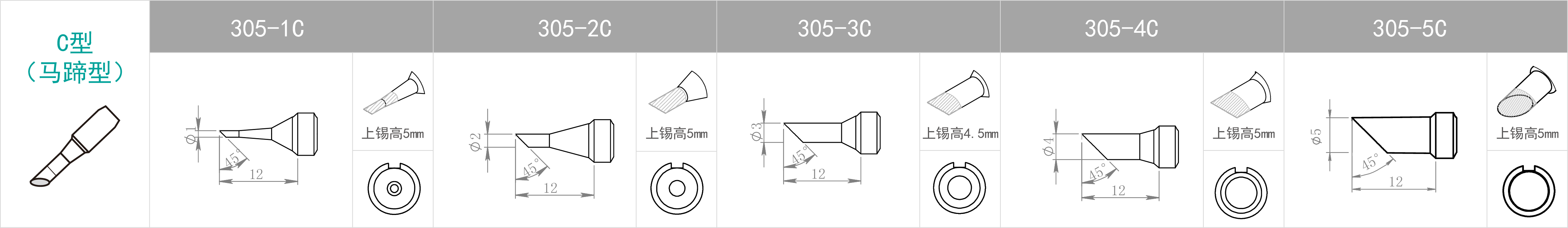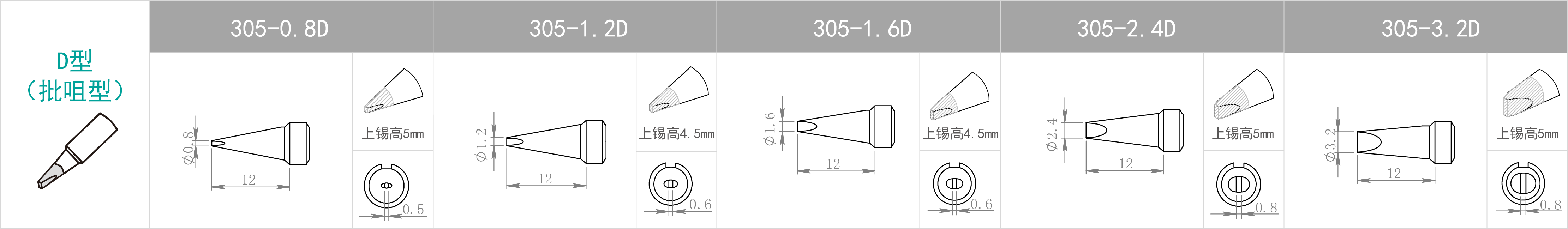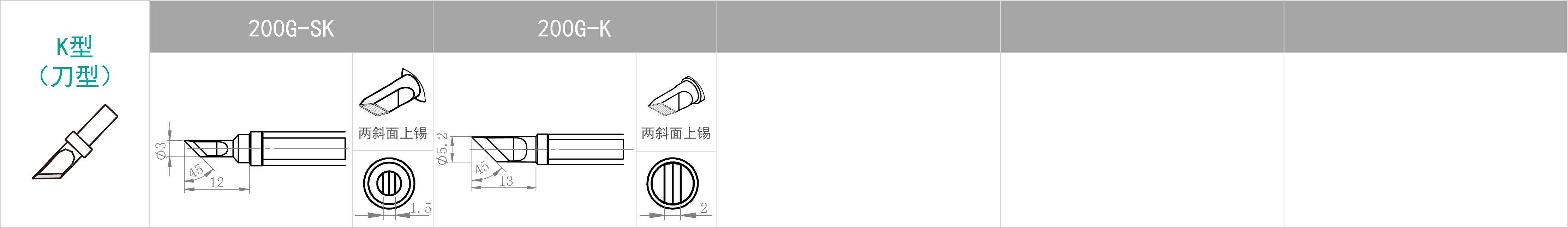 | 特點(diǎn) | 焊咀尖端尖細(xì) | B型焊咀無(wú)方向性, 整個(gè)焊咀前端均可進(jìn)行焊接 | 用批咀部分進(jìn)行焊接 | 用焊咀前端斜面部分進(jìn)行焊接。 適合需要多錫量之焊接 | 使用刀形部分焊接, 豎立式或拉焊式焊接均可。 屬于多用途焊咀 |
